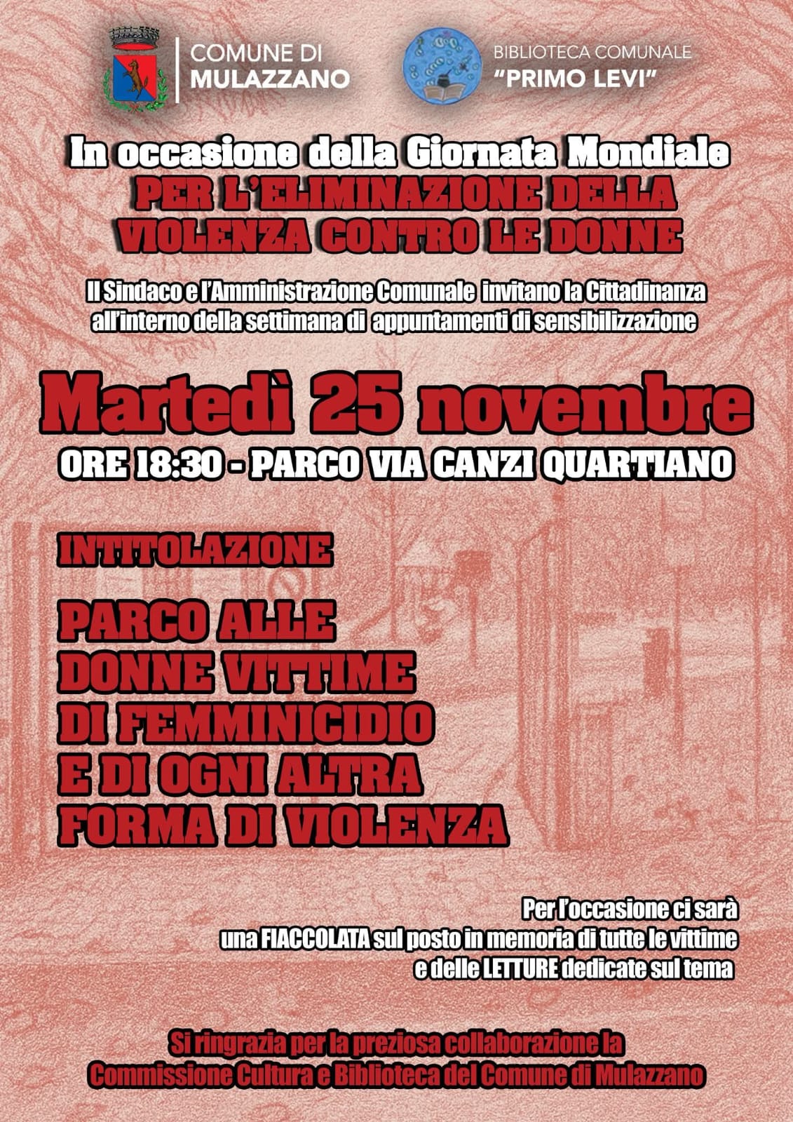 Intitolazione Parco Via Canzi Quartiano con letture e fiaccolata contro la violenza sulle donne